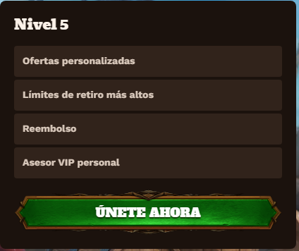 | Nivel 5 | Ofertas personalizadas, límites de retiro más altos, reembolso, asesor VIP personal. |